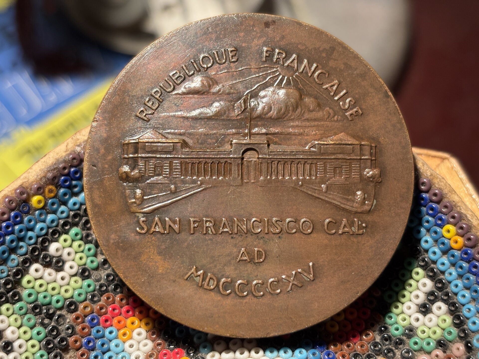 Gift to this 1915 World's Fair in San Francisco from the Republique of France, beautiful table medal, size is 50.5mm which is a tad below two inches.