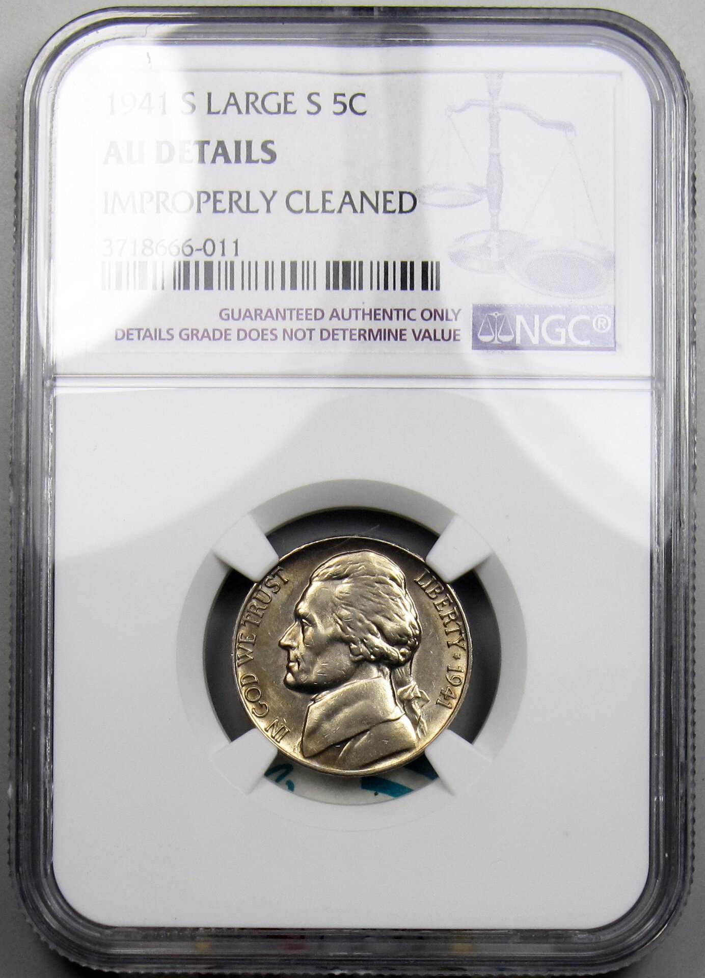 JN 1941-S Large S NGC AU Details Cleaned OH
