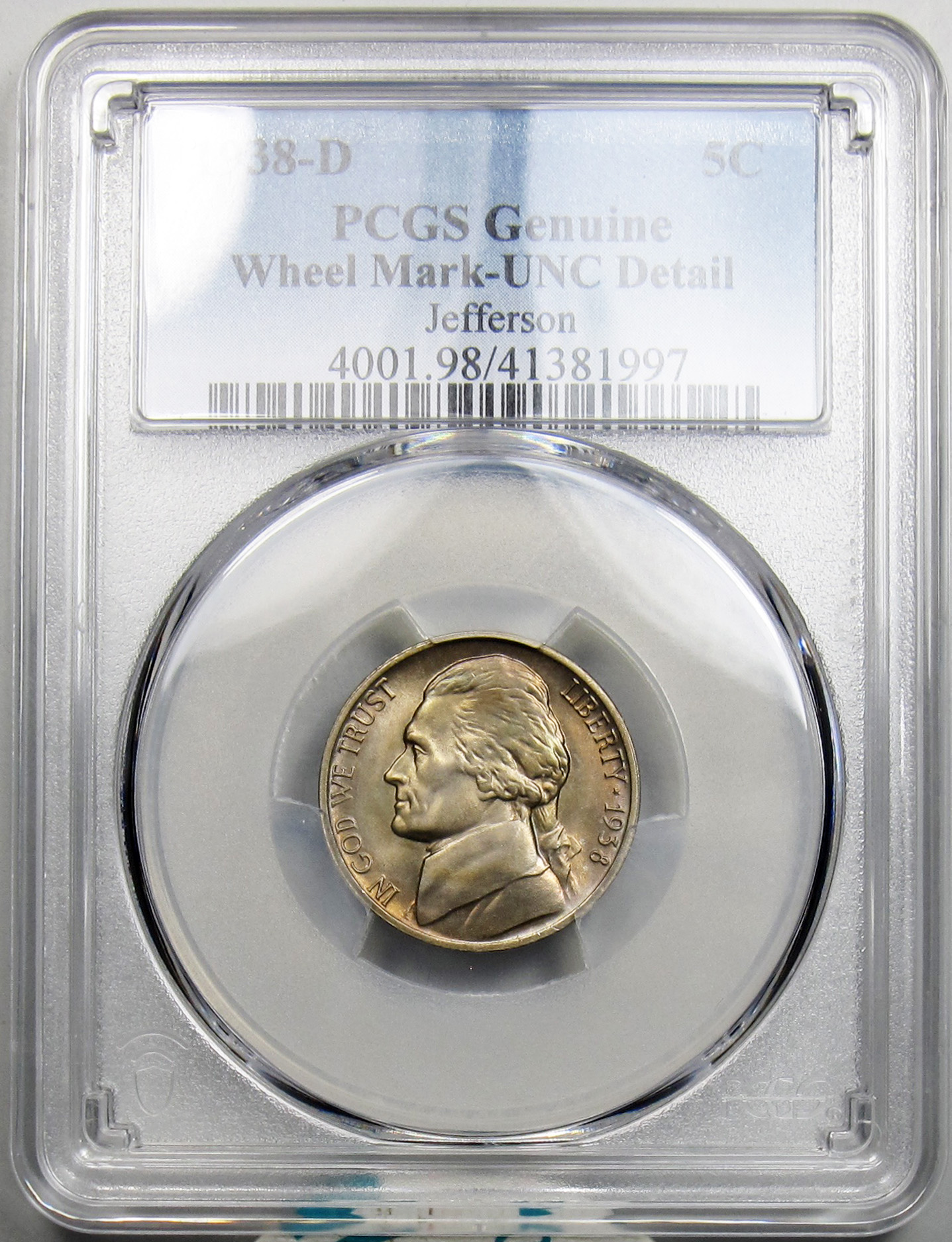 JN FV2 1938-D PCGS UNC Details Wheel Mark OH