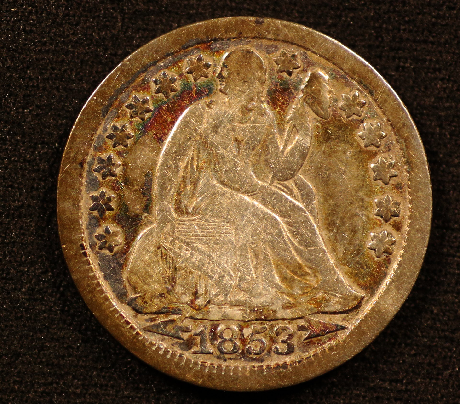 1853 Liberty Seated Arrows Dime Obverse