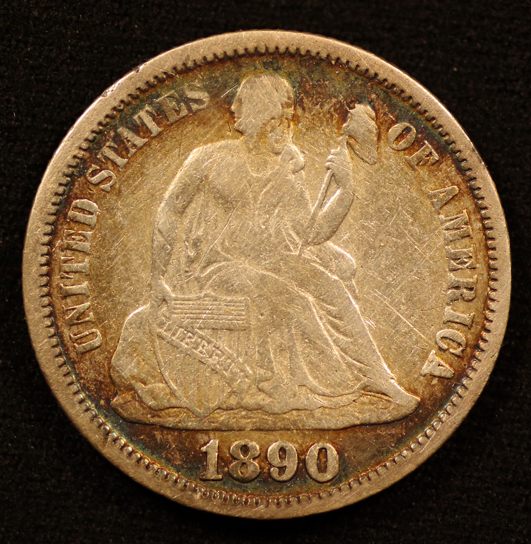 1890 Liberty Seated Legend Dime Obverse