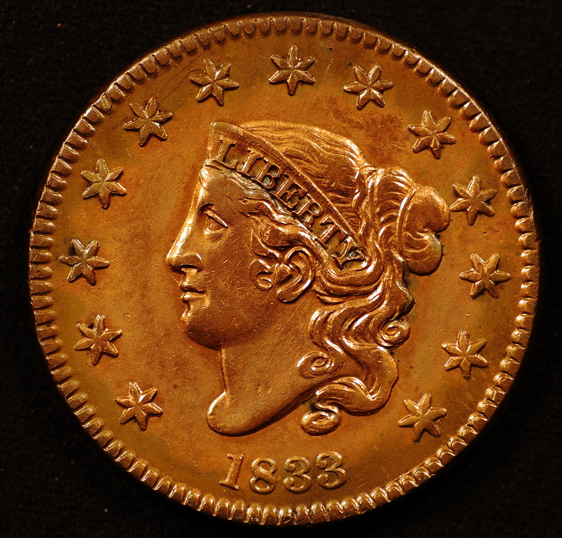 1833 Coronet Large Cent Obverse