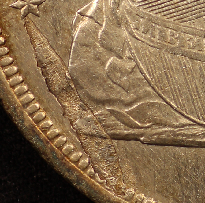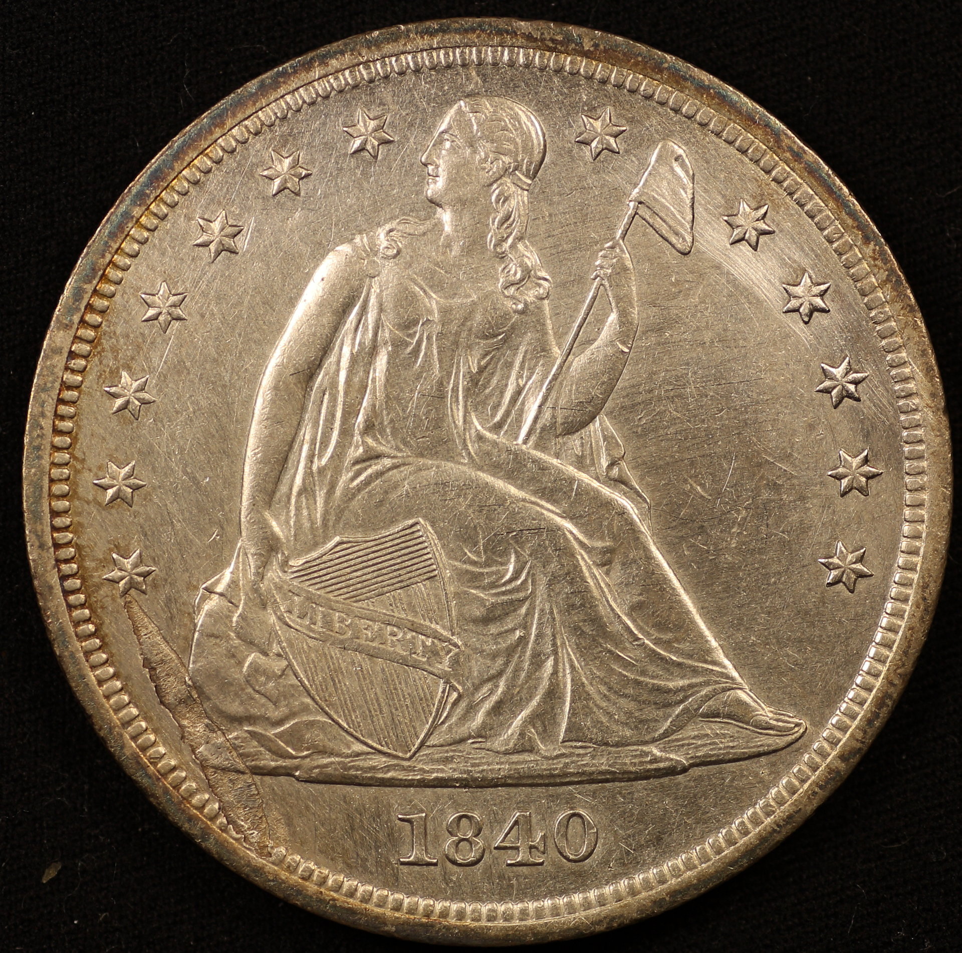 1840 Liberty Seated Dollar Flaw
