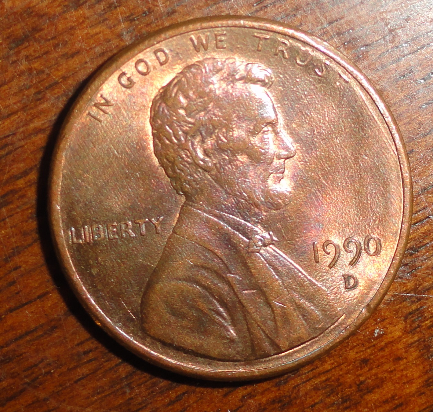 1990D Lincoln cent error obverse