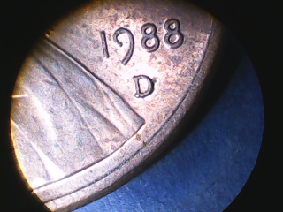 Beneath 3rd digit in date.