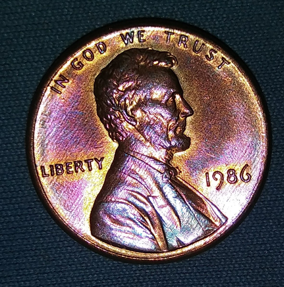 slightly rotated die my 86 toned penny