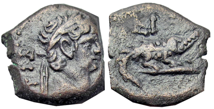 EGYPT, Alexandria. Claudius. AD 41-54. Æ Dichalkon .From Cleopatra numismatics .,