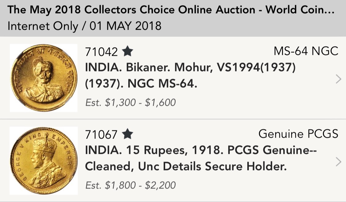 STACKS & BOWERS MAY AUCTION INDIAN RARE COINS
