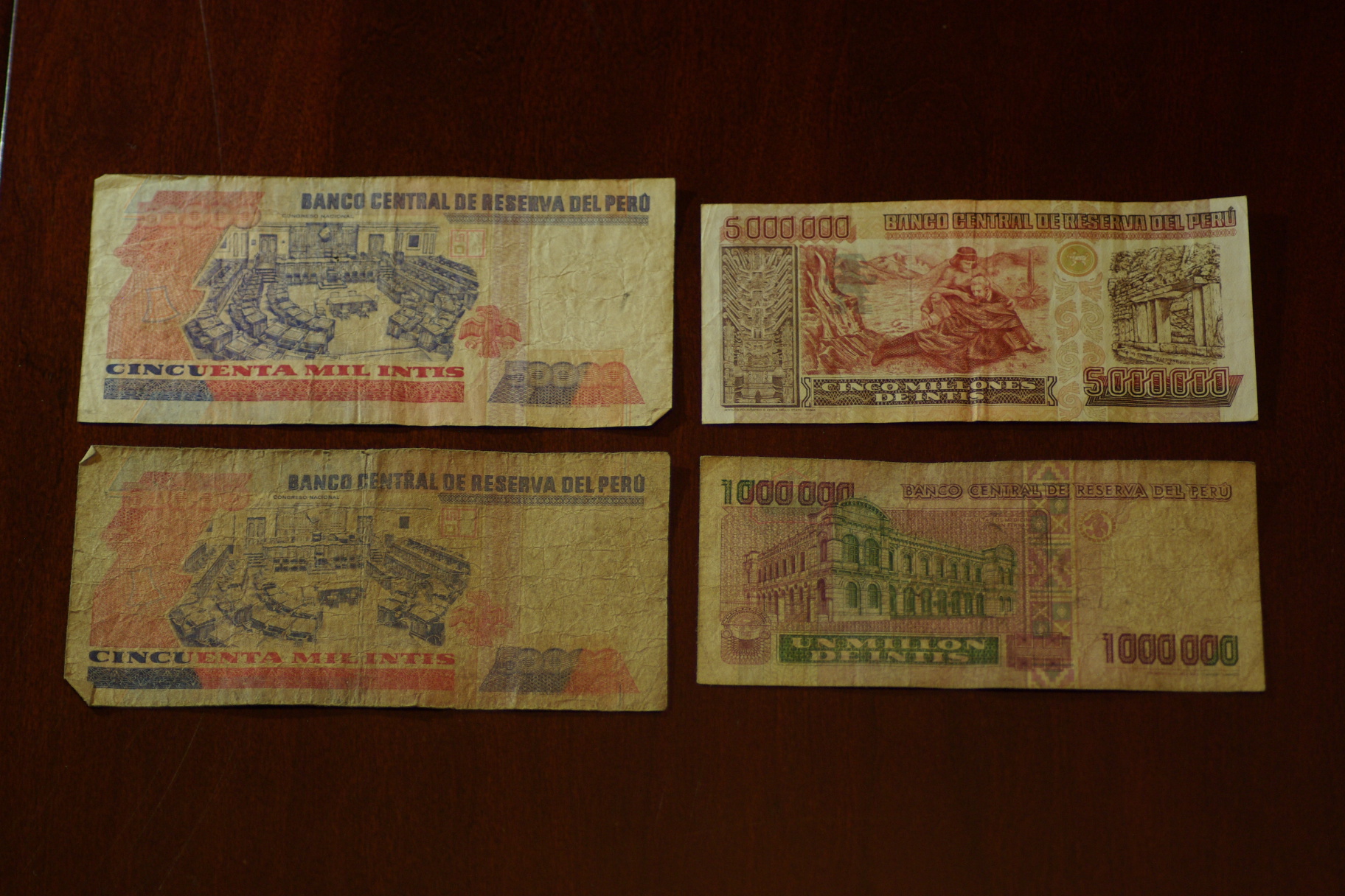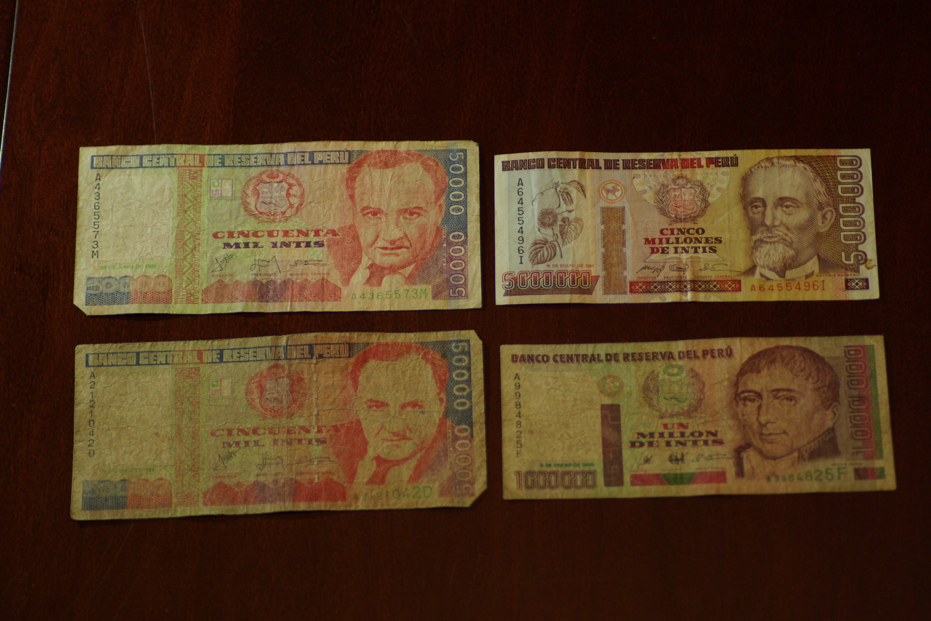 Peru 50K (2), 1MIL, 5MIL Intis REV