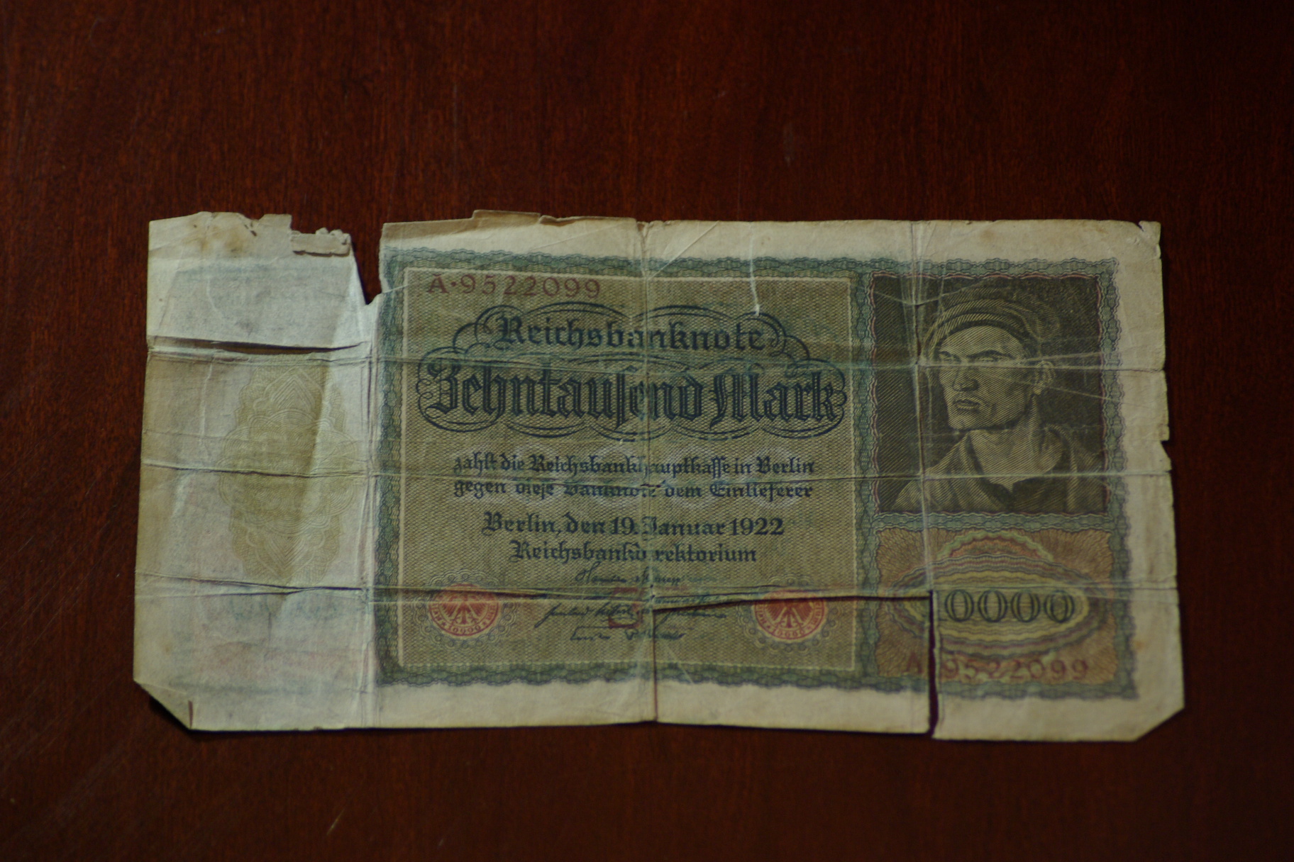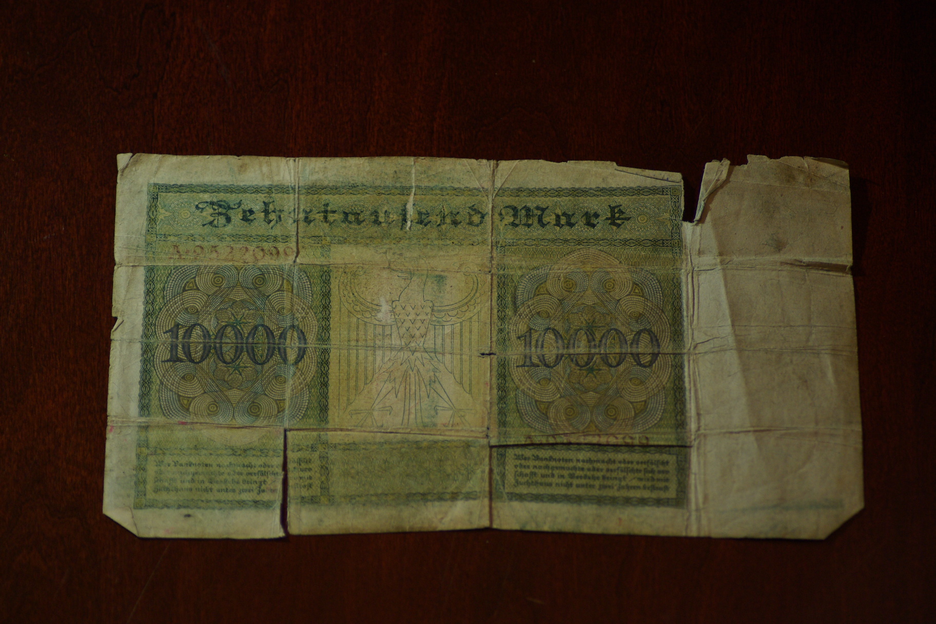 Germany 10,000 Mark Reichsbanknote. REV