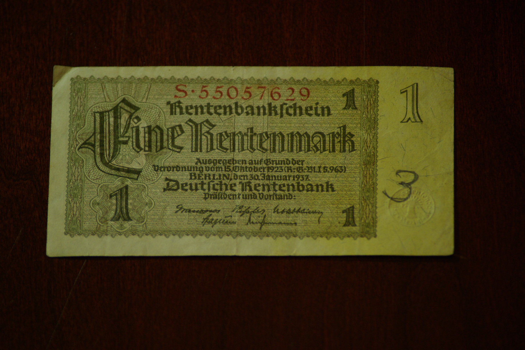 Germany Third Reich 1 Fine Rentenmark OBV