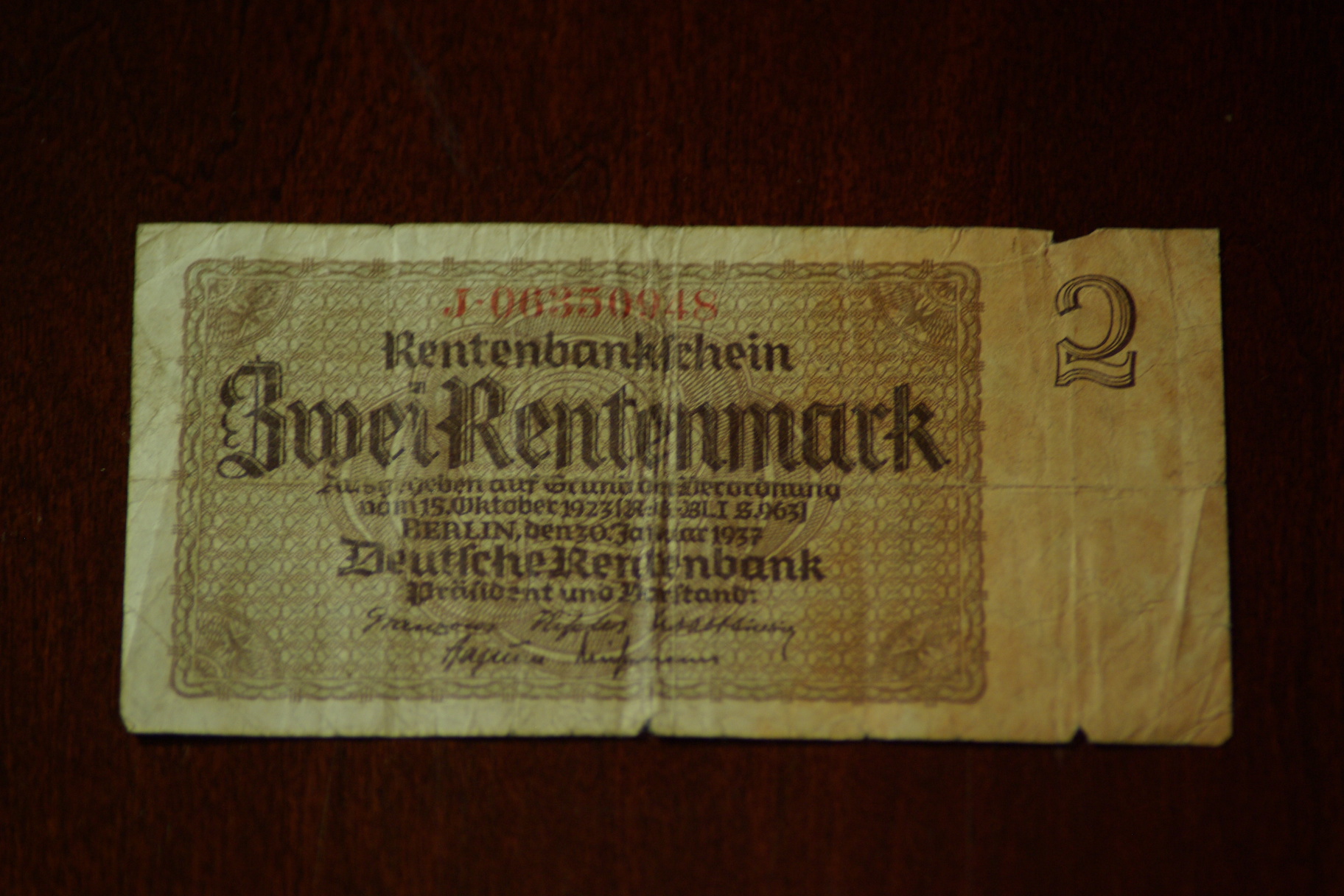 Germany Third Reich 2 Rentenmark OBV