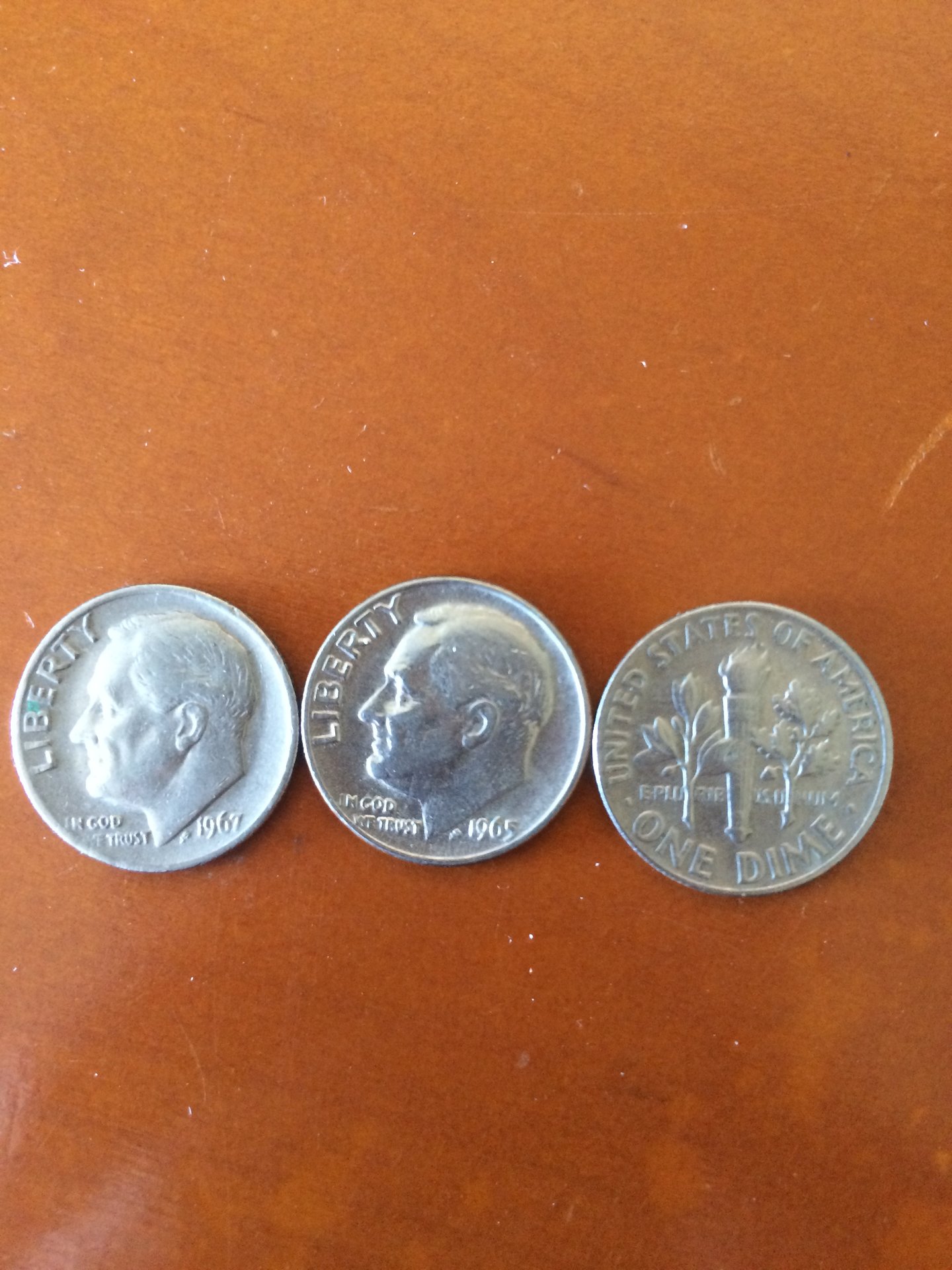 1965 and 1967 no mint mark Roosevelt Dime