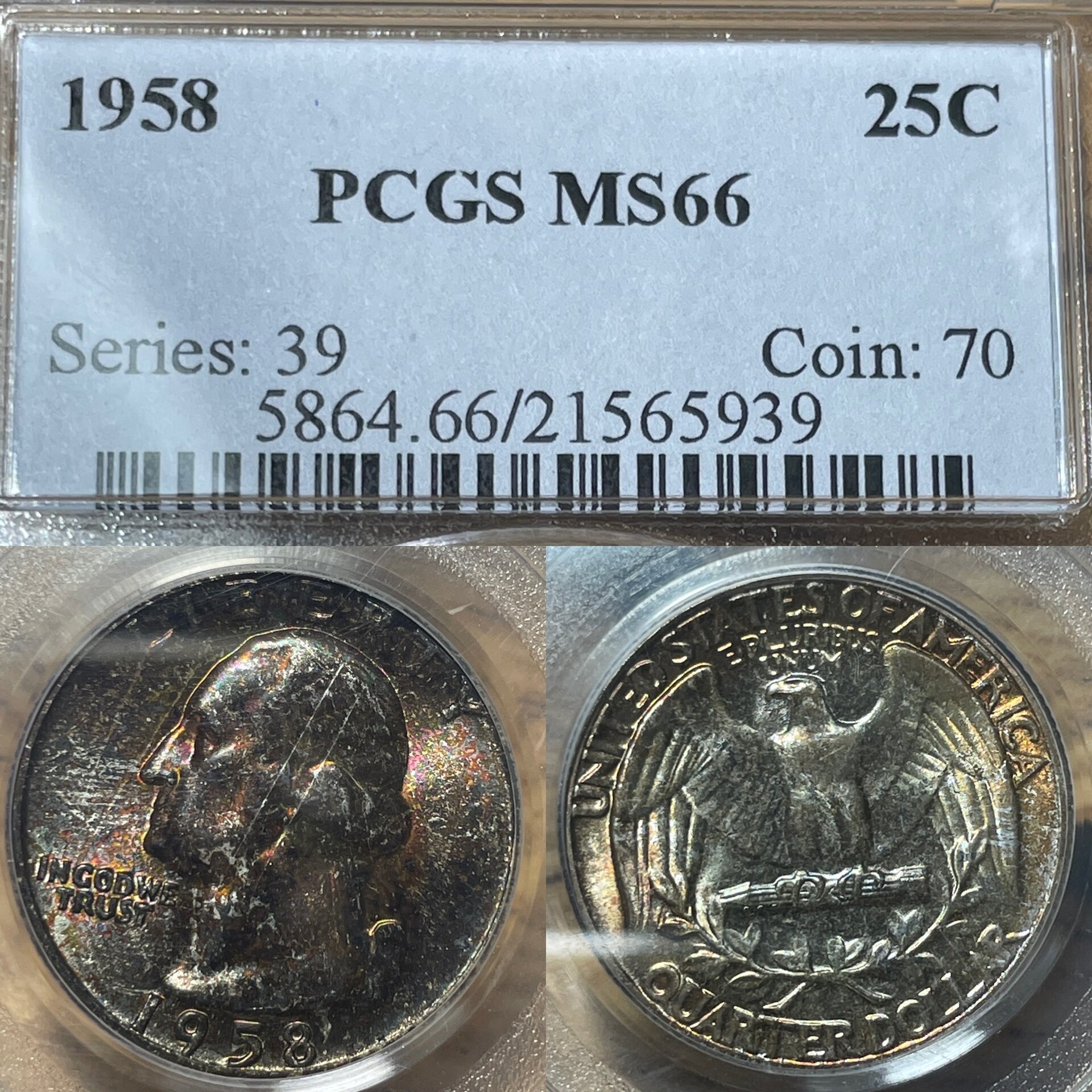 1958 MS66 Toned Washington 50c
