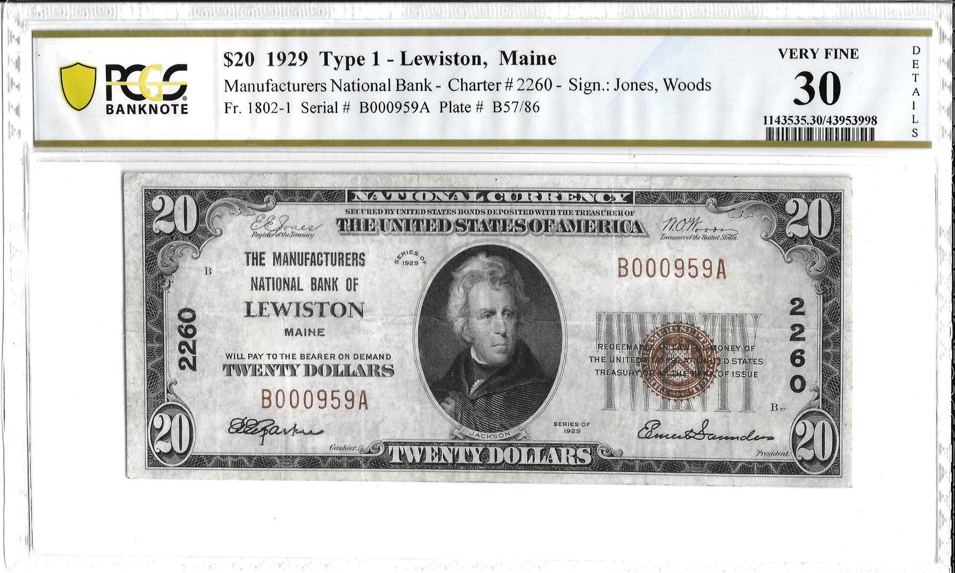 $20 Lewiston, ME, national banknote obverse