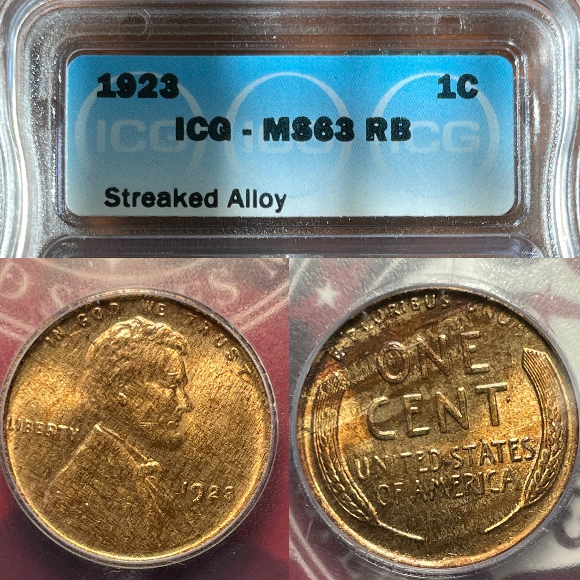 Woodgrain 1923 MS63 RB Lincoln Cent
