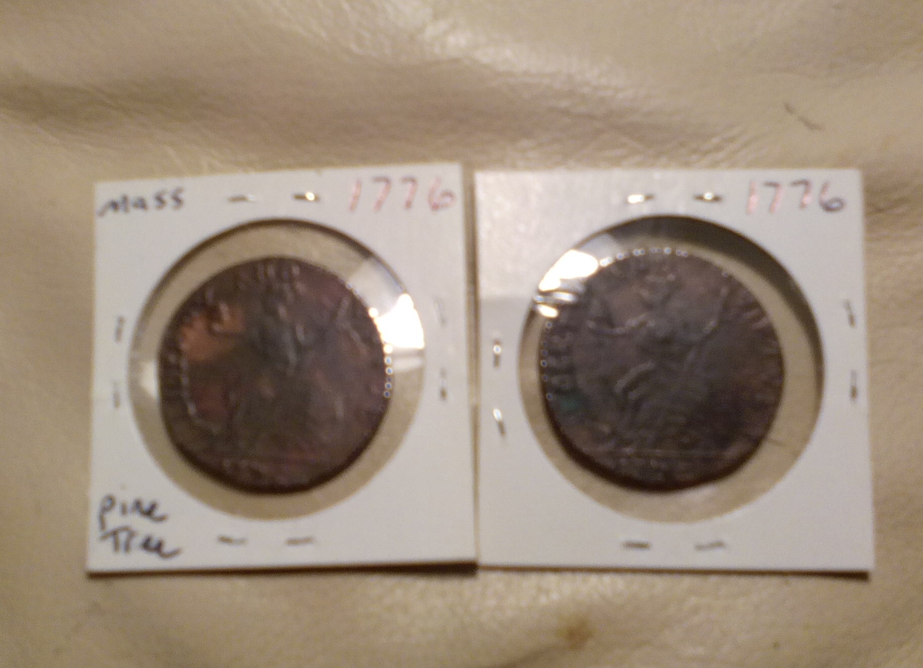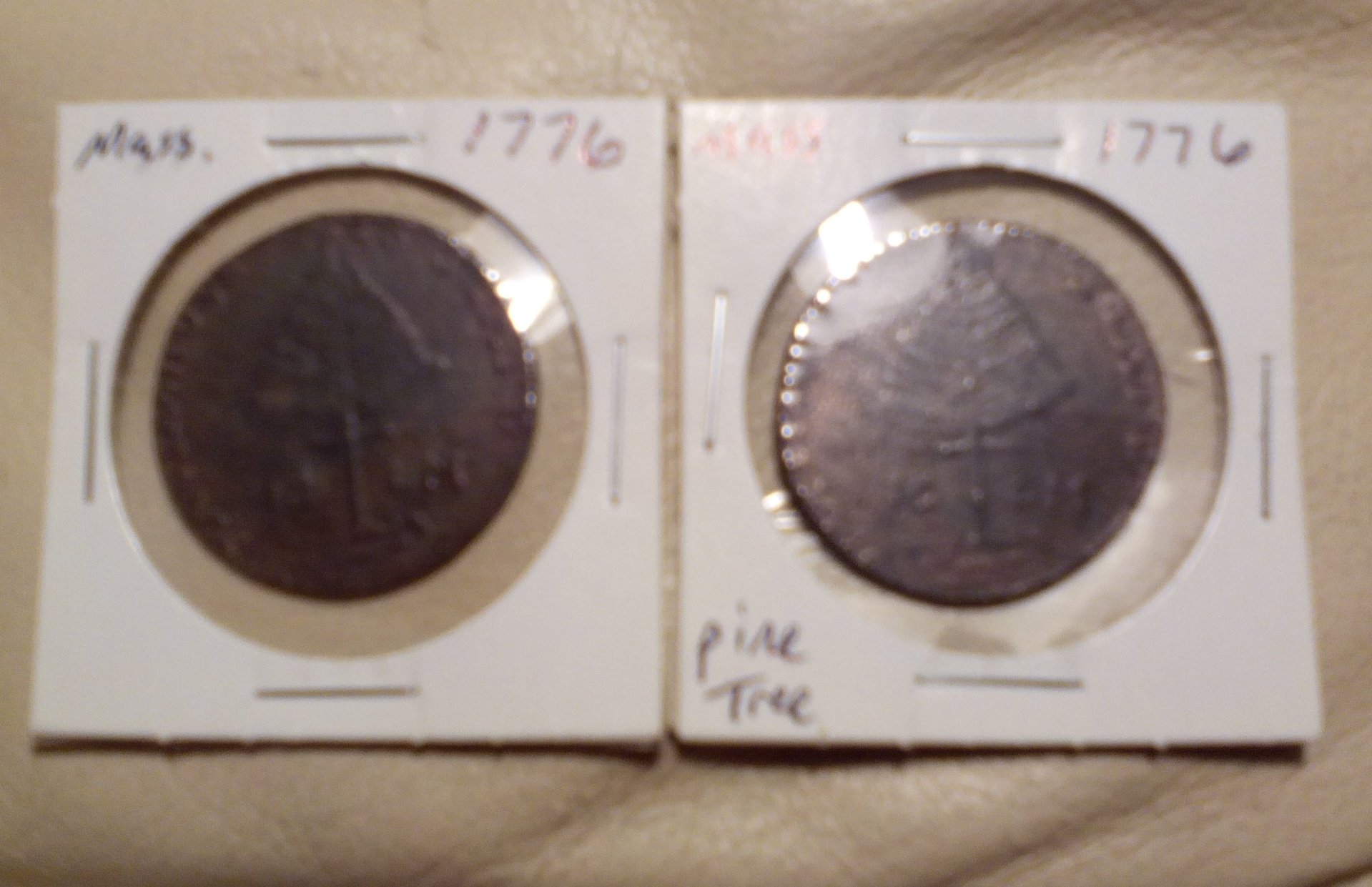 colonial coins and 1776 Pine Tree