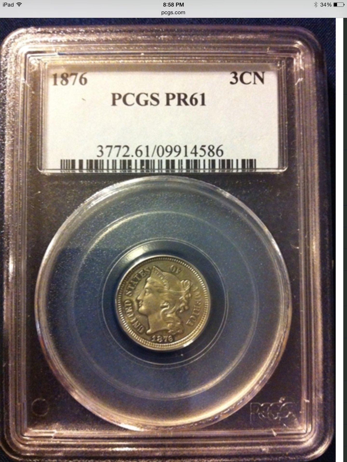 1876 proof 3 cent