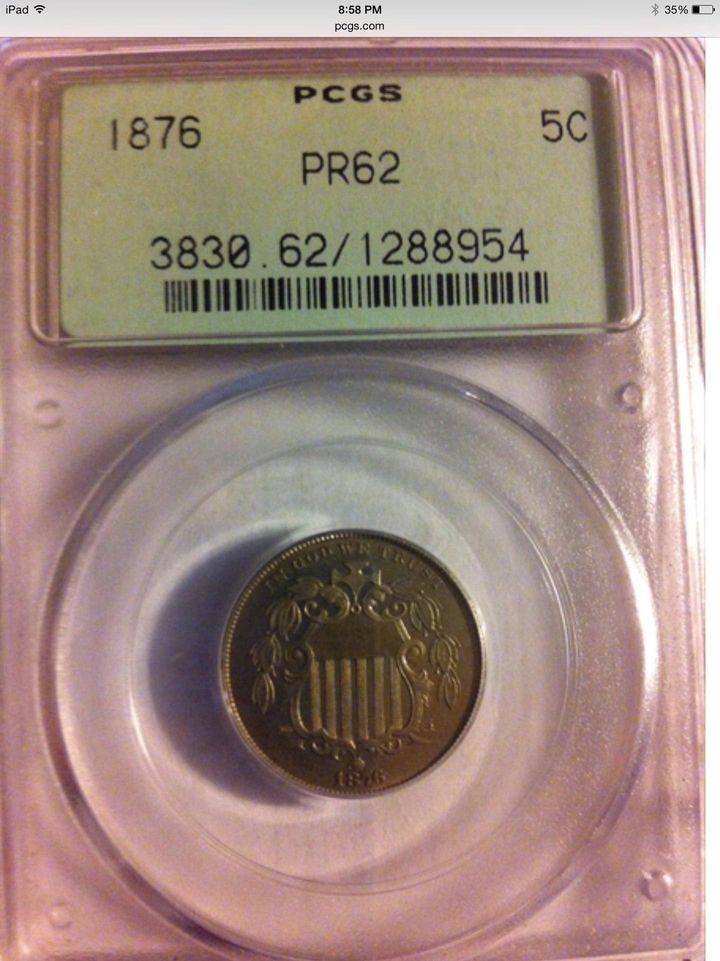 1876 proof 5 cent