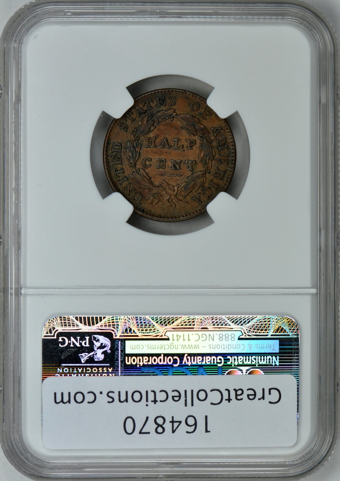 1832 HALF CENT - CLASSIC HEAD NGC MS 55 BROWN, CAC Reverse Slab