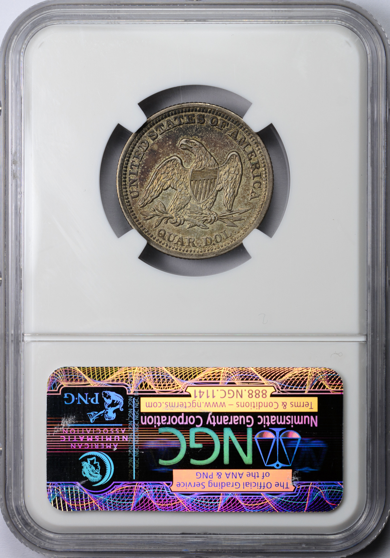 1856 QUARTER DOLLAR - SEATED LIBERTY, NO MOTTO NGC MS 53, CAC Reverse Slab