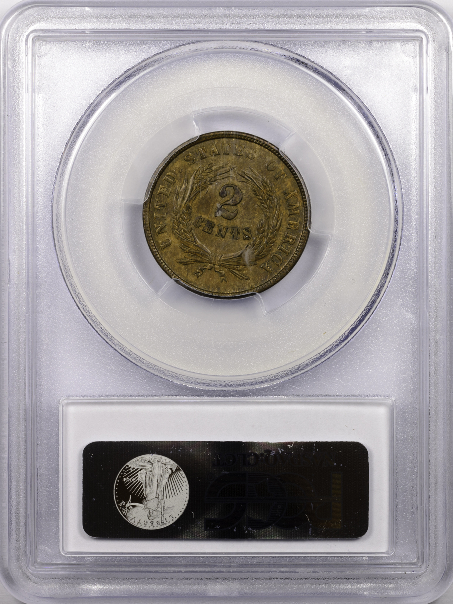 1864 TWO-CENT PIECE PCGS MS 62 LARGE MOTTO, BROWN, CAC Reverse Slab