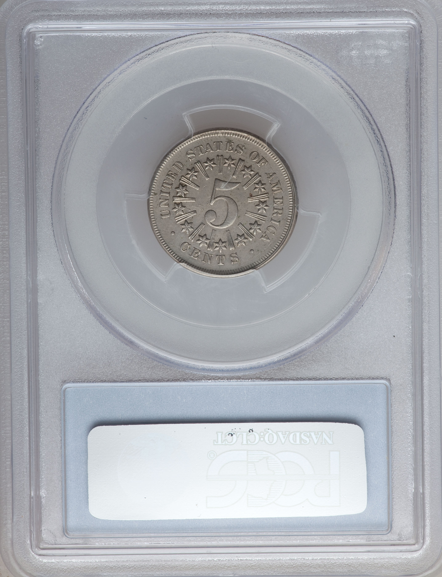 1876 FIVE-CENT PIECE - SHIELD, NO RAYS PCGS MS 45, CAC Reverse Slab