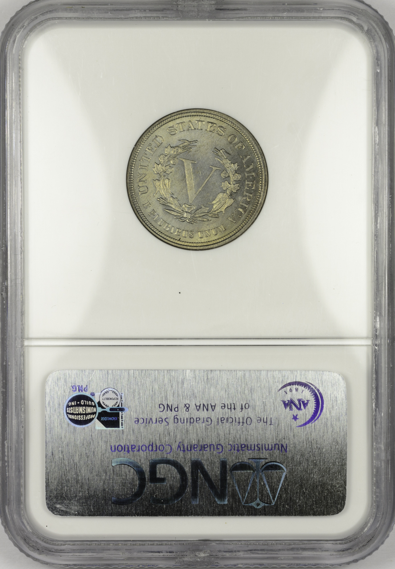 1883 FIVE-CENT PIECE - LIBERTY HEAD, NO "CENTS" NGC MS 65 NO CENTS, CAC Reverse Slab