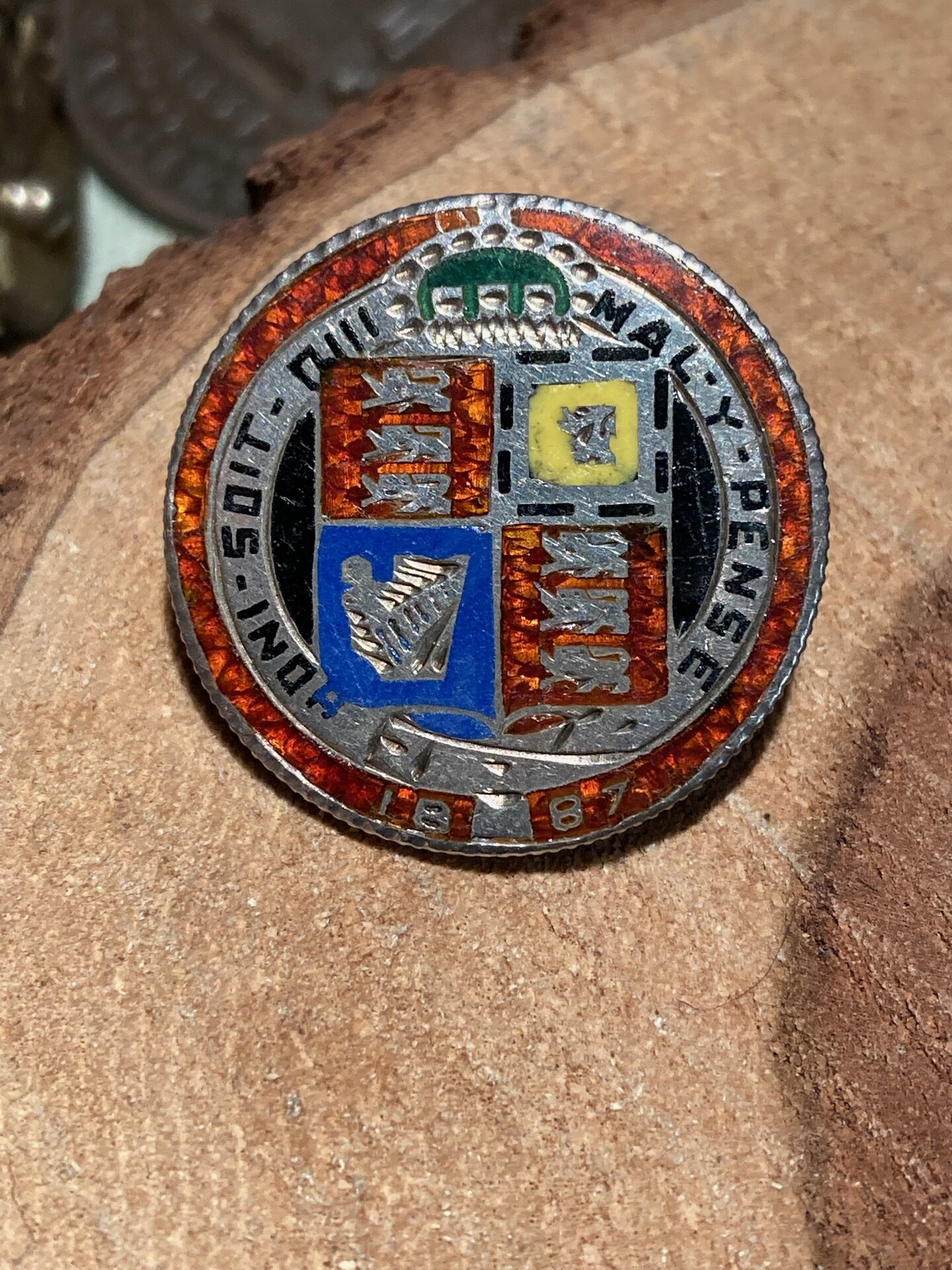 1887 Victoria Great Britain Honi Soit Qui Mal Y Pense Coin Enameled Pin- Reverse