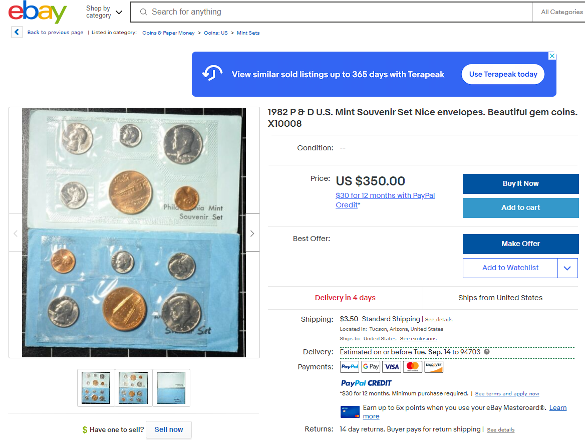 1982 US Mint Souvenir Uncirculated Mint Sets