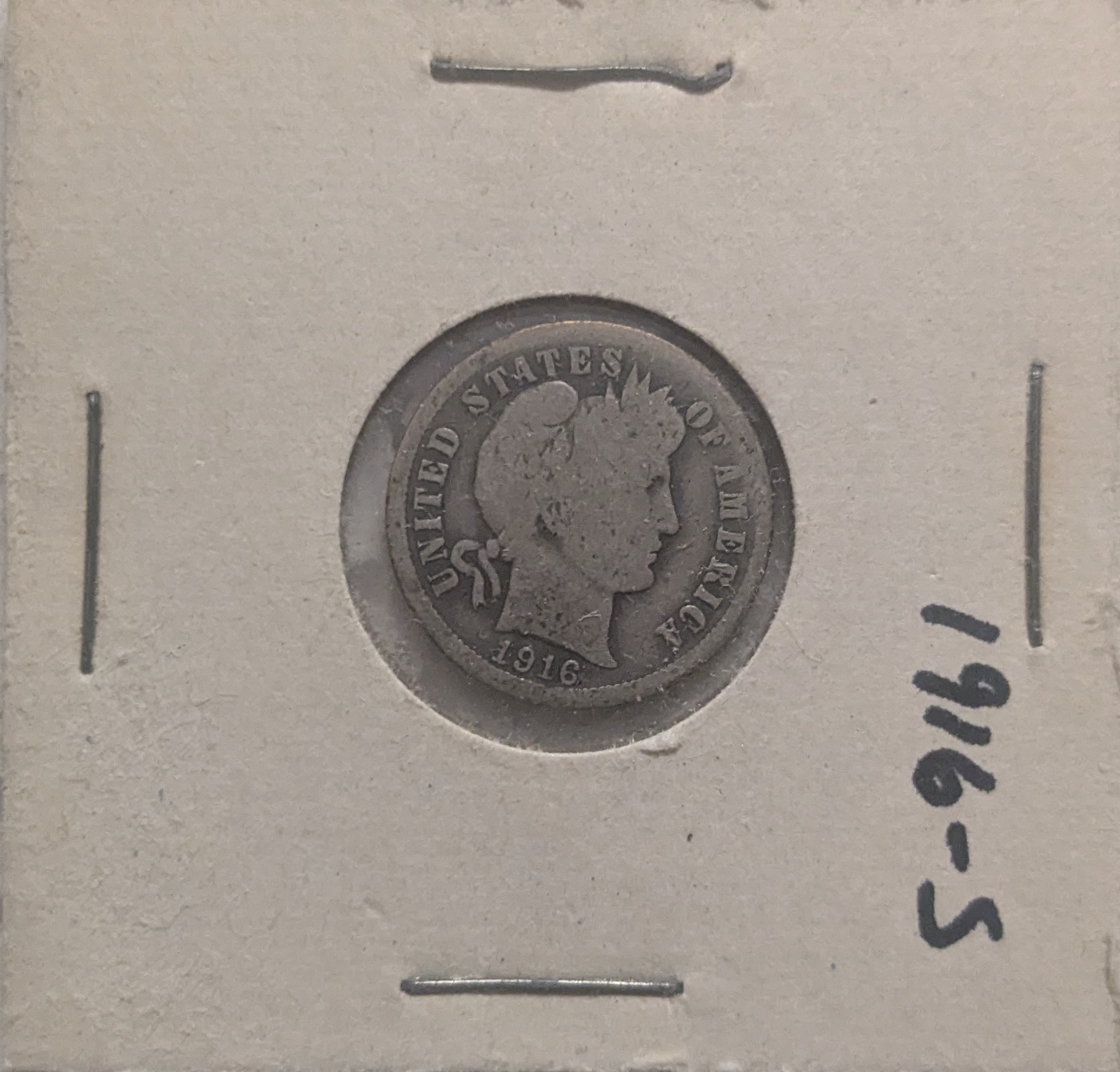 1916 S Barber dime - front