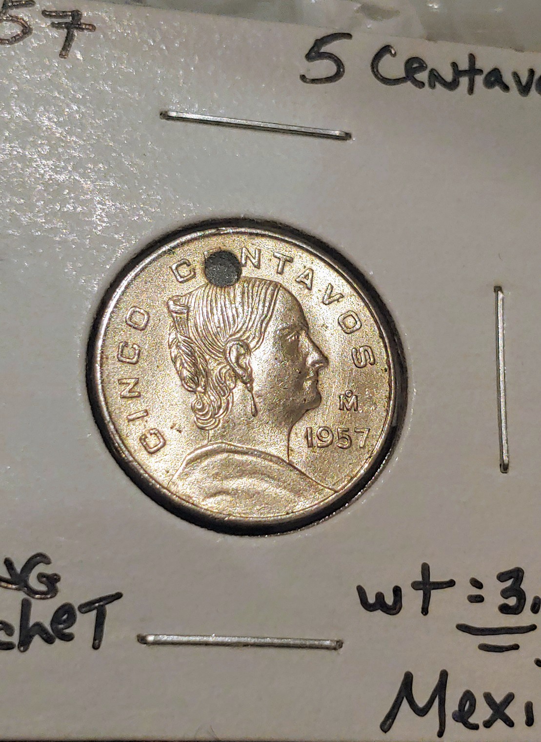 1957 5 Centavos (Wrong Planchet: Obv)