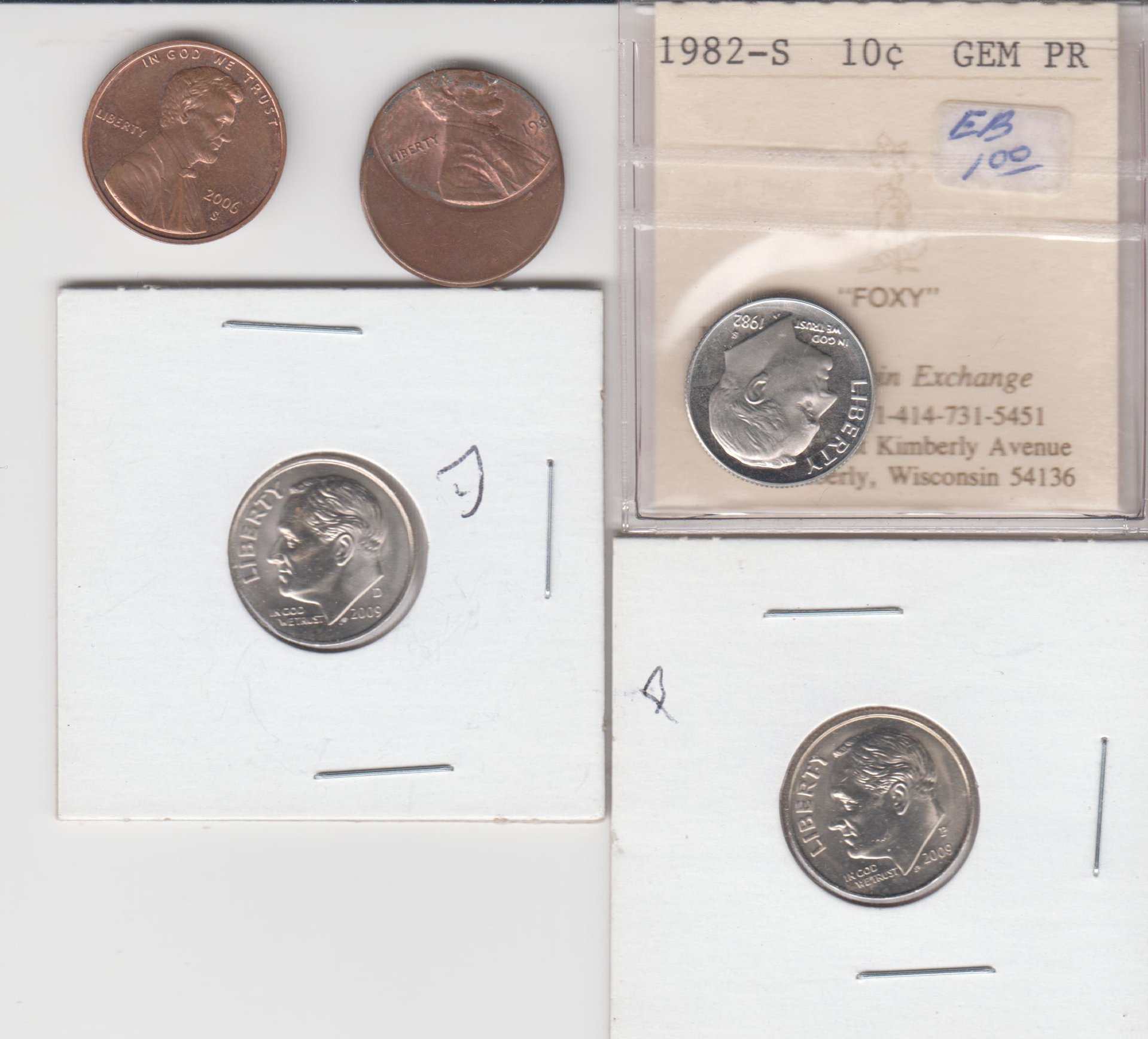 (3) Dimes, (2) Cents.