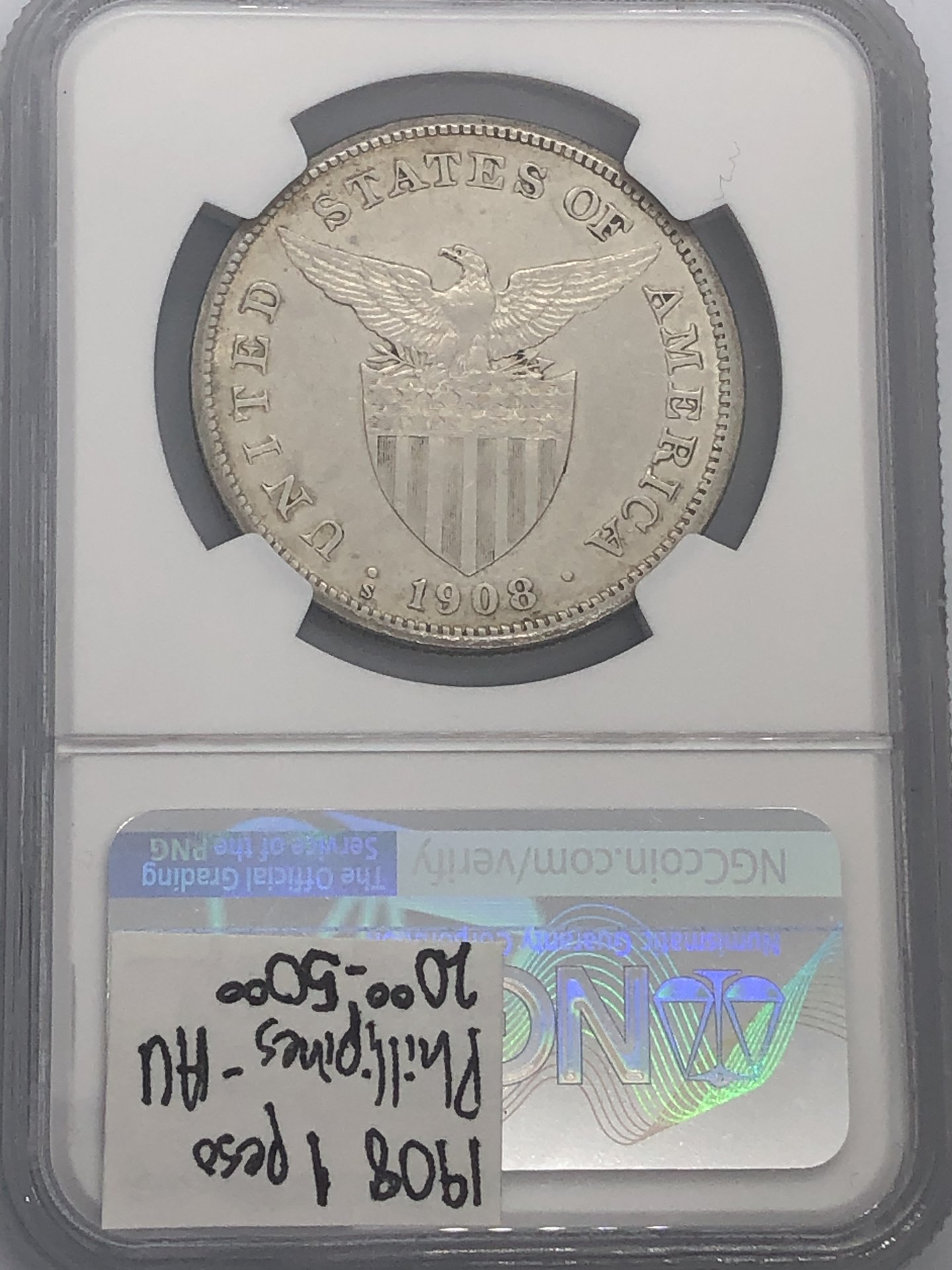 1908 S U.S.-Philippines Peso rev closeup