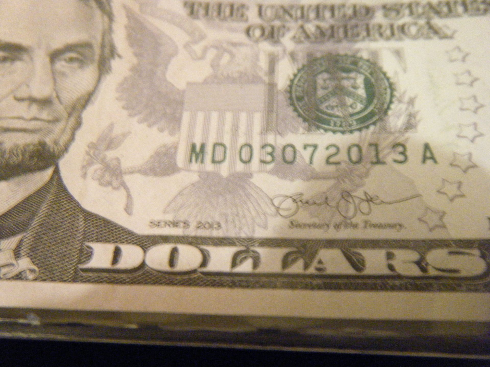 03-07-2013 b-day note on a 2013 $5