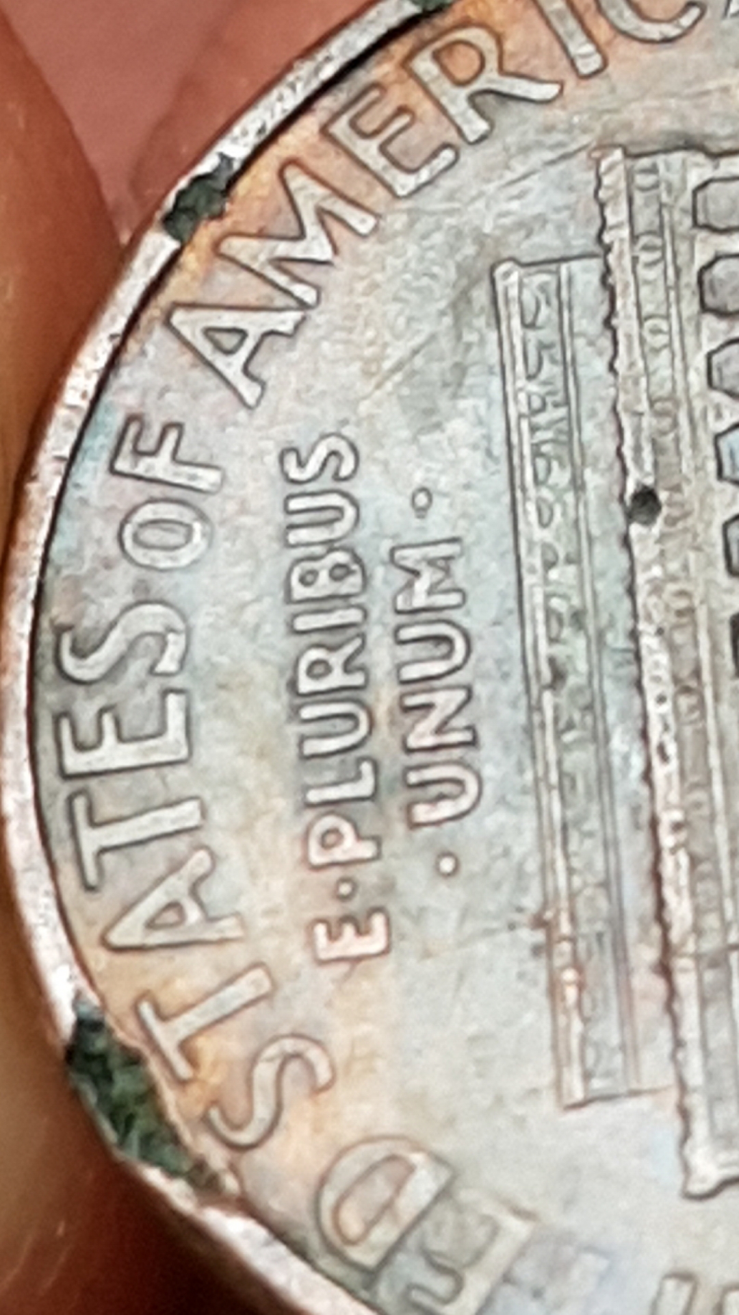 The photos are not clear. But the O in of appears to have an extra line inside the O and also above the T in states.