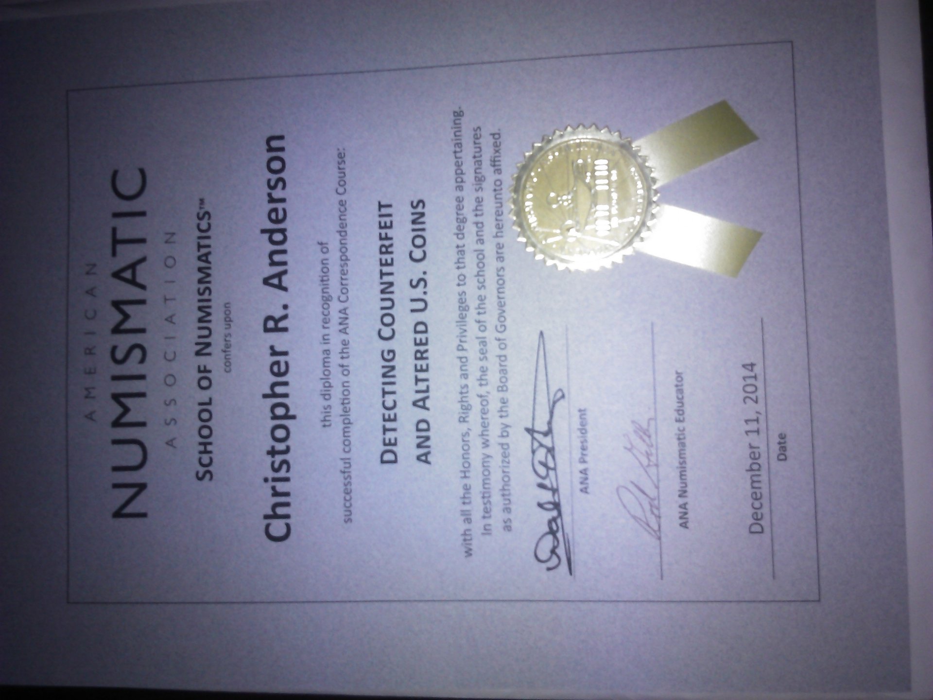 all snap aw snap finally got my next certificate detecting counterfeit and altered the US. Coins.got a 90 on this one guys, I'm kind of mad at myself because I skipped one question and I didn't realize I skipped it and I normally check through the whole entire test before hand. Now the final course
