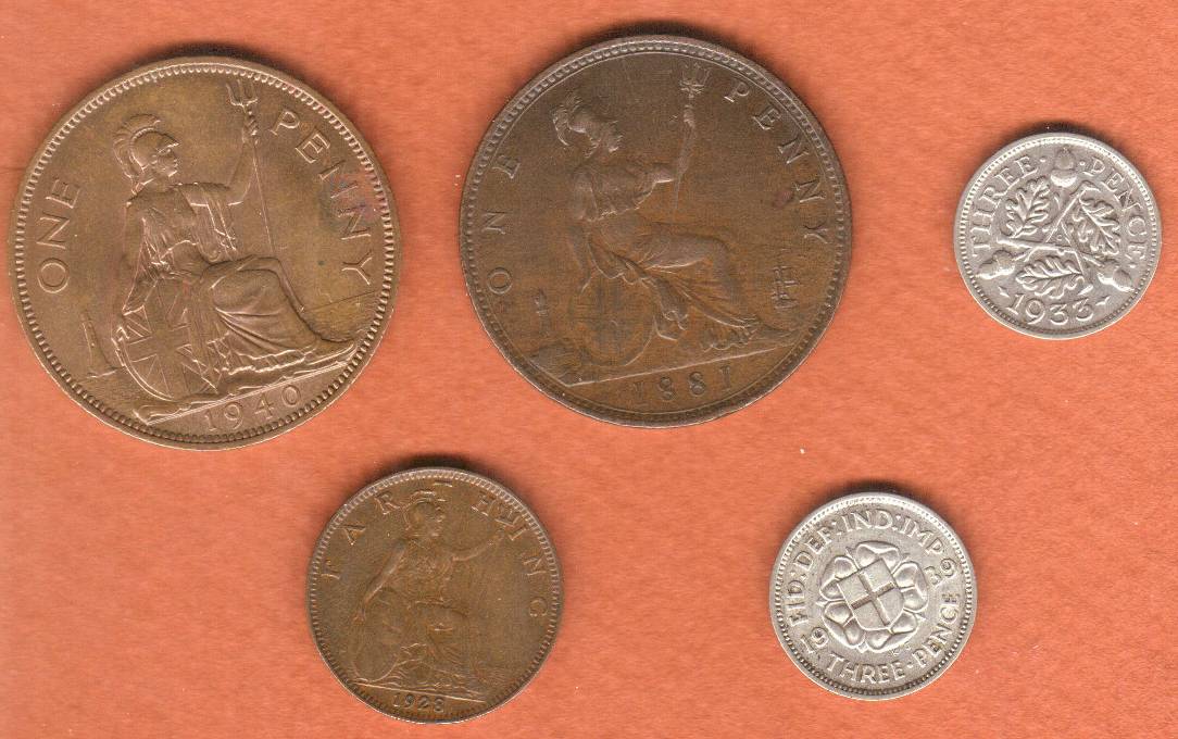 10 Nice British £/s/d Coins, 1881 to 1948, $30 postpaid