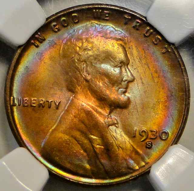A rainbow toner for variety in my set. Matches pretty well on both sides. Album toning I would guess. With the finger print from when it was pushed in the hole? Ha ha This coin has toned nicely on mint state details. My 30 P is 66 RD but I wont bore you with that here. A couple more days and I'm out of coin pictures for this thread. They all start getting too easy to keep my interest. Time to start looking for a few Matte Proofs I guess. I don't have any yet and those take on some super nice toning for sure. Matt