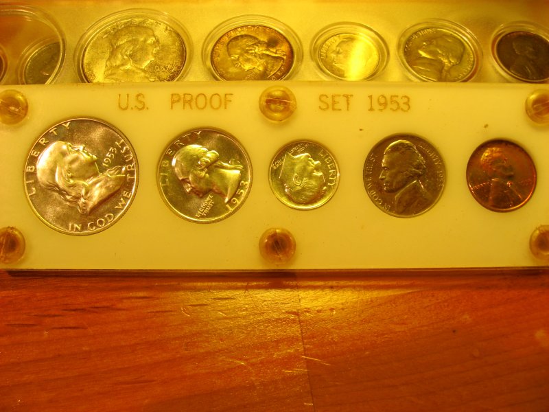 Here's another obscure doubled die, this time 1954-S. This one has cool concentric die scratches in the early die state...
