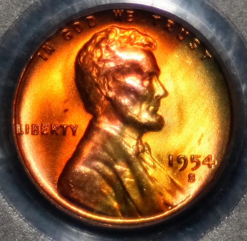 1954 Lincoln Cent PCGS PR66RB. This was a $14 eBay bargain coin, bought raw in November 2011. PCGS graded this PR66RB first time through. I love the subtle coloration. 1954 Oldsmobile F88. A concept car from 1954 that sold for $3.2 million in 2005. The gold paint color coordinates nicely with the Lincoln of the same year, above.