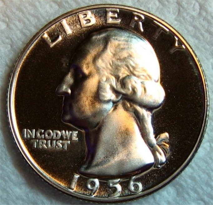 Man, it was tough to get anything resembling a decent pic of this one, so these will have to do. shiny coins are a pain to photograph, but '56 is my year, so I had to put up something :smile