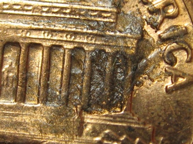 Here's an amazing find from an OBW roll....not sure if the grease is from the mint or from the coin roller, but this was in the middle of a sealed roll.