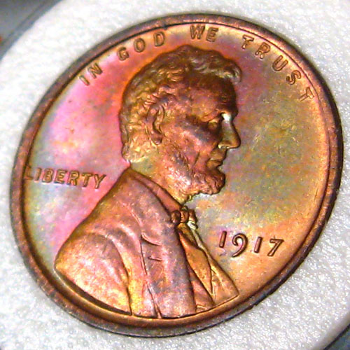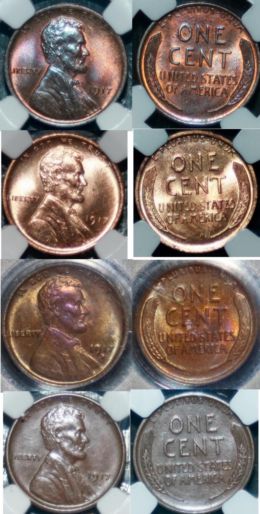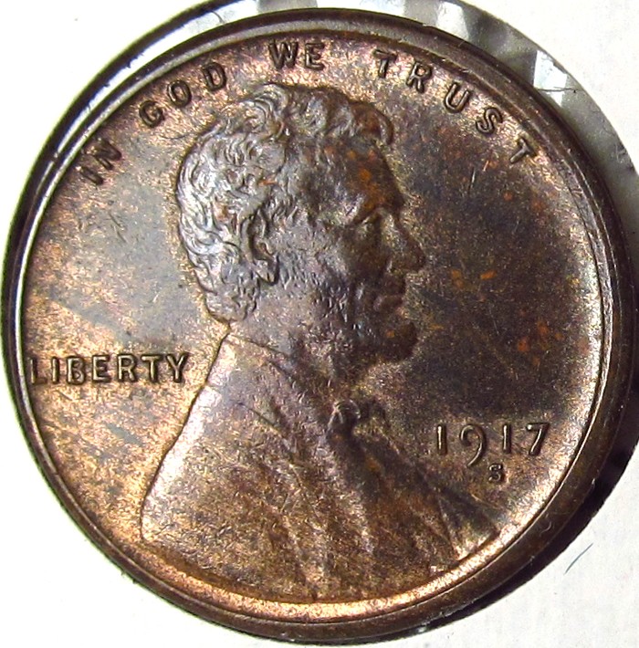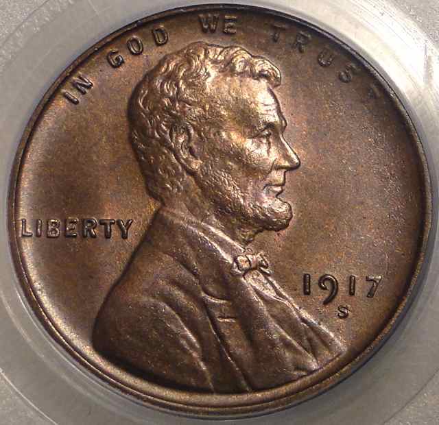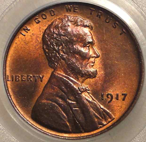 It's after midnight here on the East Coast ... a new day. On to the 1917's!! This was a raw coin that I bought for $95 off eBay ... and PCGS graded it MS65RB first time through. The coloration reminds me a bit of some Matte Proof Lincolns (1909-1916) I've seen.