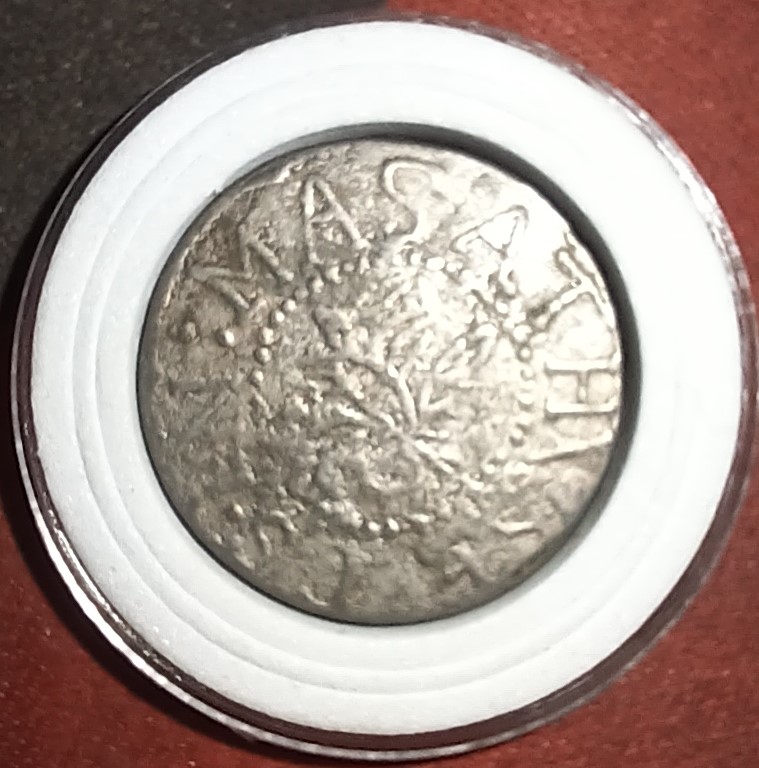 All of the dated Massachusetts silver pieces are dated 1652, except for the Oak Tree two pence which is dated 1662. I believe that was the year the Massachusetts General Court authorized that piece. For a Massachusetts silver coin, this piece is fairly common. The same set of dies was used for a number of years. They were constantly repaired.