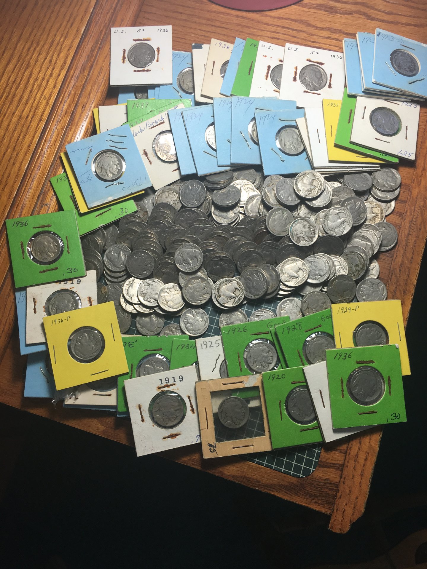 Please send me a message if you're interested in any of the coins. PayPal ONLY.. buyer does not have to pay for fees Free Shipping Indian Pennies *Various Conditions* SOLD ANACS 1885-P Morgan $1 MS 63 PL $100 1915-D Barber 25c AU 53 $125 1974-D Kennedy 50c MS 64 DD Obv Breen-5299 $55 Reach out to me for an offer on the Buffalo nickels, they are a mix of dateless and dated. A bunch of the are in old flips. ***I have 260***