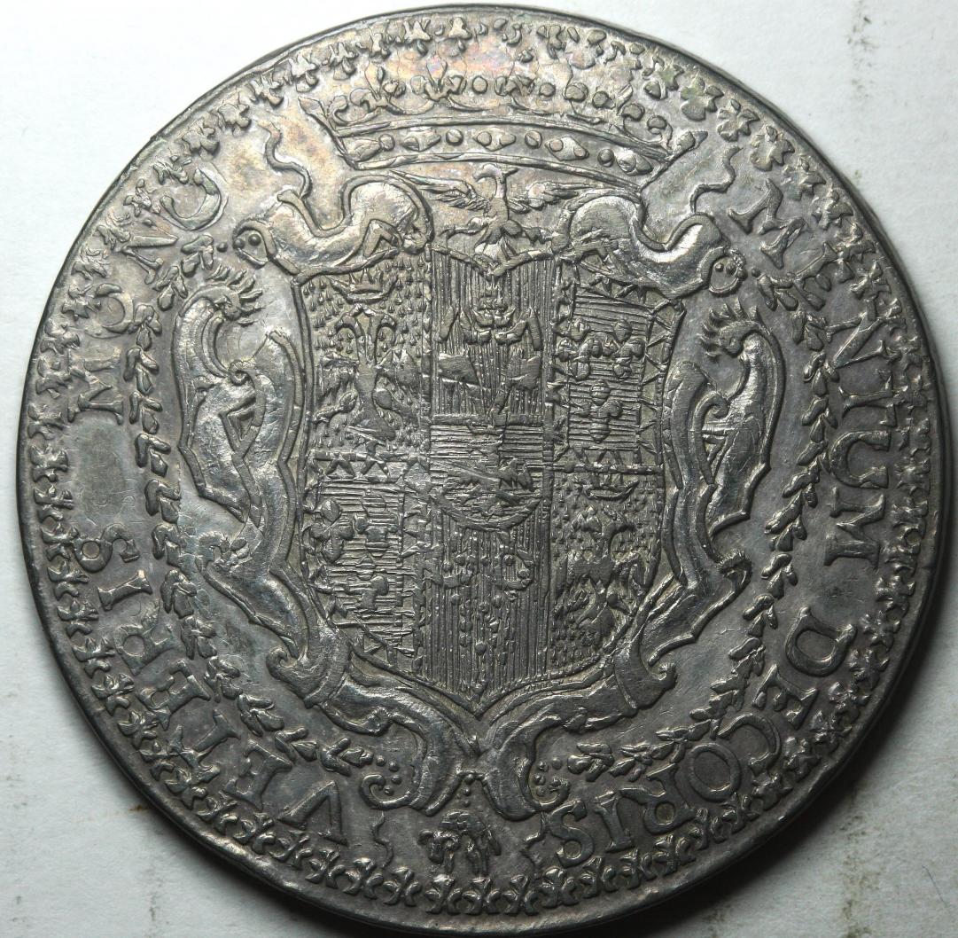 This is a neat piece I have never seen before. It appears to have been struck multiple times... you can see some rotation in the big pics. This piece is the size of the typical thaler. This is a neat coin that I have never seen before and I thought you guys would enjoy.