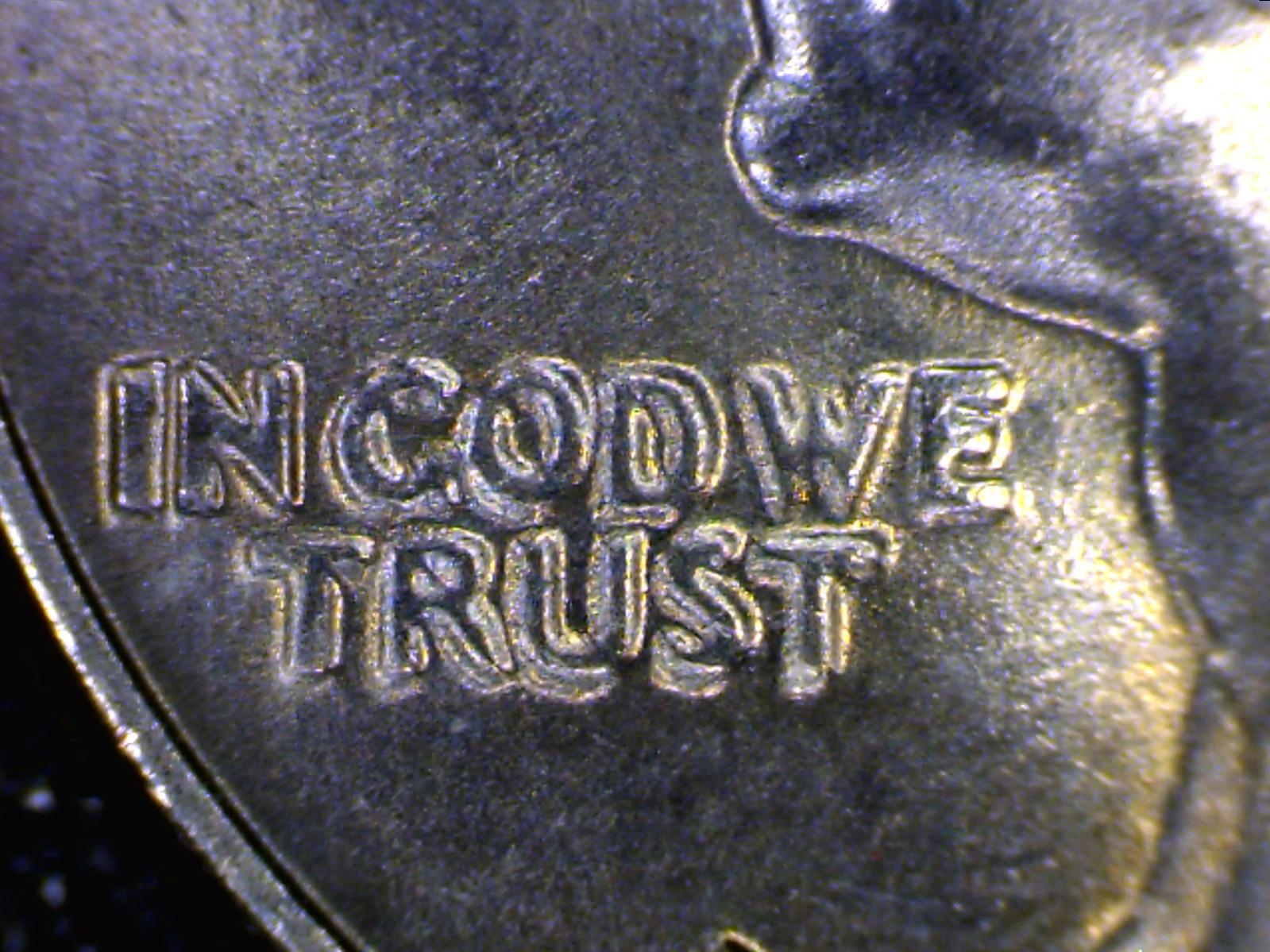 Tried again with less glare this time. My eyes don't work like they used to, so I could be imagining all of this. To me they just look like very FAT letters - so that is why I put the coin under the scope in the first place. I need to invest in a good camera.