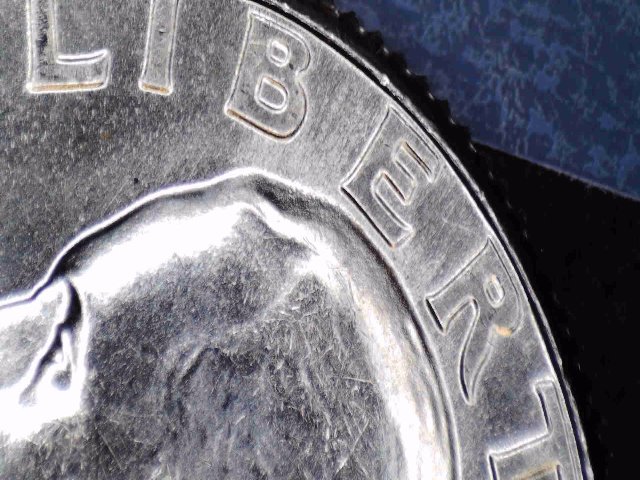 I pulled them out of the mint sealed box of 5 other coins sets. it would have had to happen before the cello packing that kind of damage would still be evident on the cello.. and what looks to be incused partial lettering to me