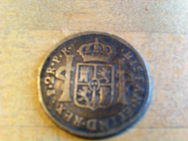 Its a nice Spanish 2 Realies silver piece. King of Spain carlos on obverse. Pillars of Hercules (Gibralter) reverse. A very nice coin. edited